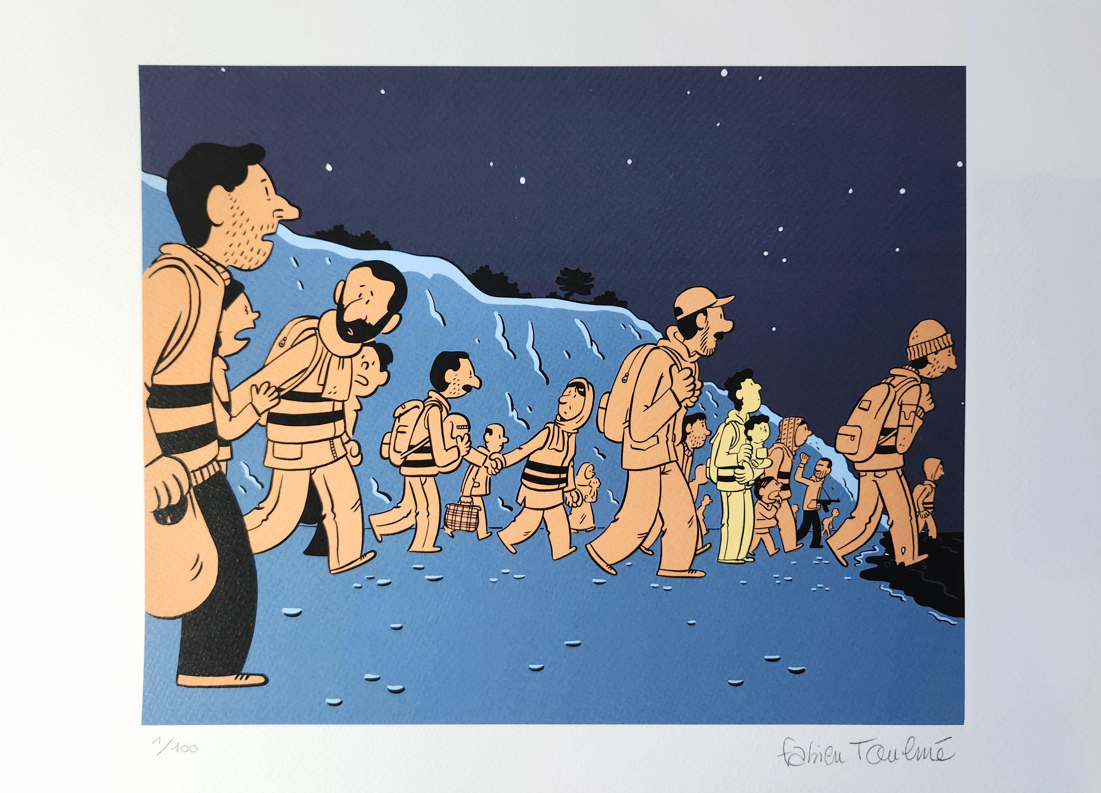Tirage numéroté signé (100 exemplaires) reprenant l'illustration du coffret 3 Tomes de l'Odyssée d'HakimFormat A3 sur papier Tintoretto Gesso 250g