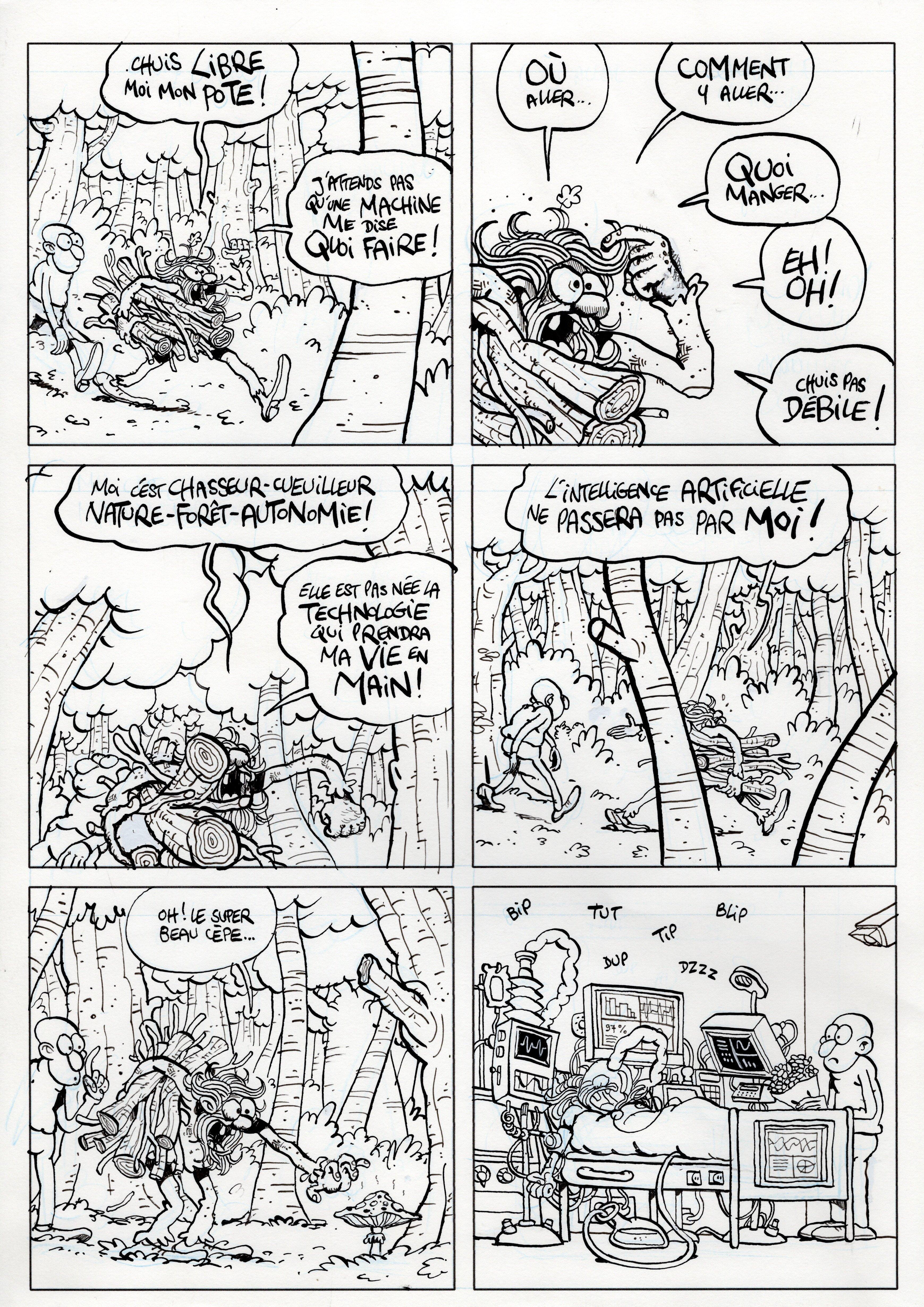Format A3 (29,7x42cm).Planche originale de l'album "Réseau-boulot-dodo", tome 2, Fluide glacial 2023, p. 47.